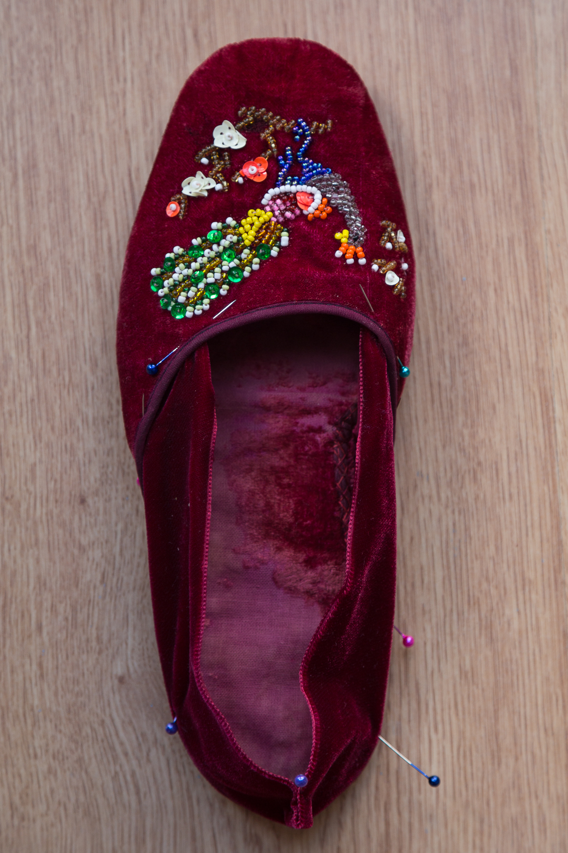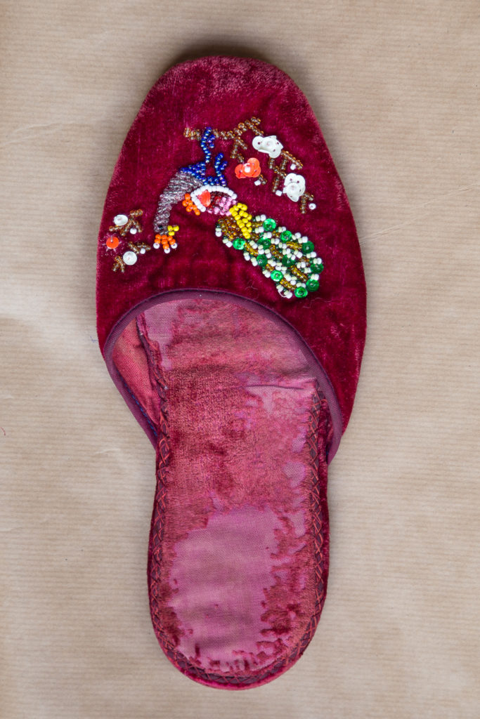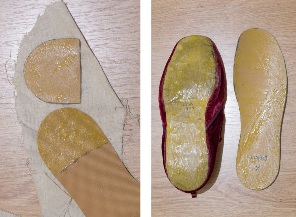 Hace varios años tomé «prestadas» 😜 a mi madre, unas zapatillas de estar por casa japonesas de finales de los 80´s (investigando un poco he descubierto que en realidad son de los años 50), son de esas cosas que tienes pensado arreglar pero nunca haces, así que, consideré que ahora era el momento, además aprovecharía para estrenarlas en el Regency Ball Sevilla y creo que me han quedado perfectas para el evento.